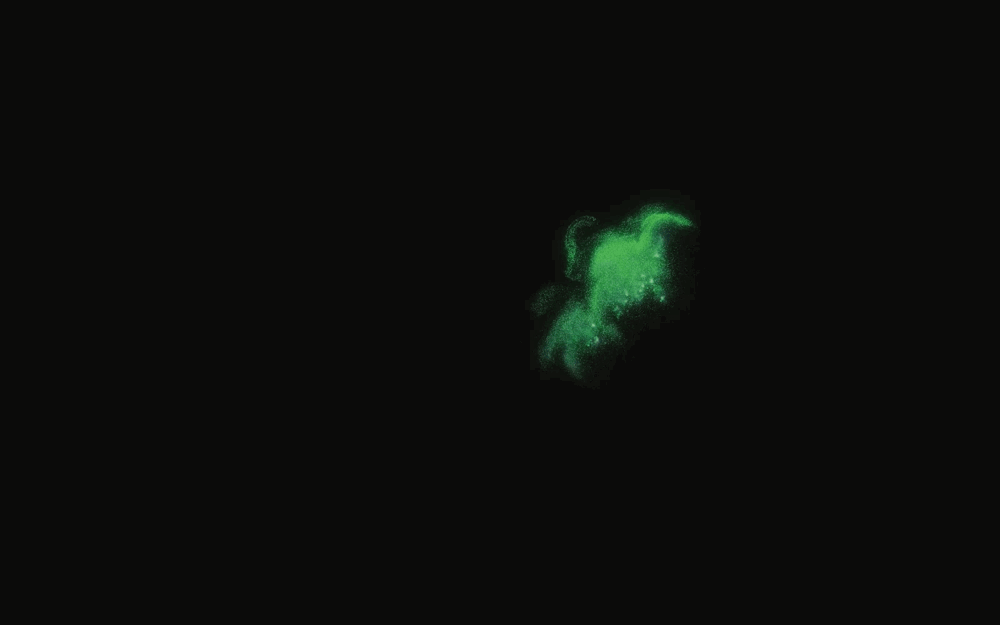 The project is a computational simulation of algae bloom, an environmental hazard in today’s world, yet also a representation of vigorous biological reproduction process. It is inspired from an ancient organism, cyanobacteria, who dominated the Great Oxidation Event and transformed the earth from an anaerobic to an aerobic atmosphere around 2.5 Ga(billion years) ago. It is one of the most vibrant organisms that can double themselves in a day. Though people often associate trees when towards a greener planet, it is actually cyanobacteria and its variable descendents floating in water, that assimilate most carbon dioxide and produce 70% oxygen of the earth. My aim with this project is to render this behavior more visible and to question human’s essential reliance on oxygen and our connection to organisms that often go unnoticed in our daily life.