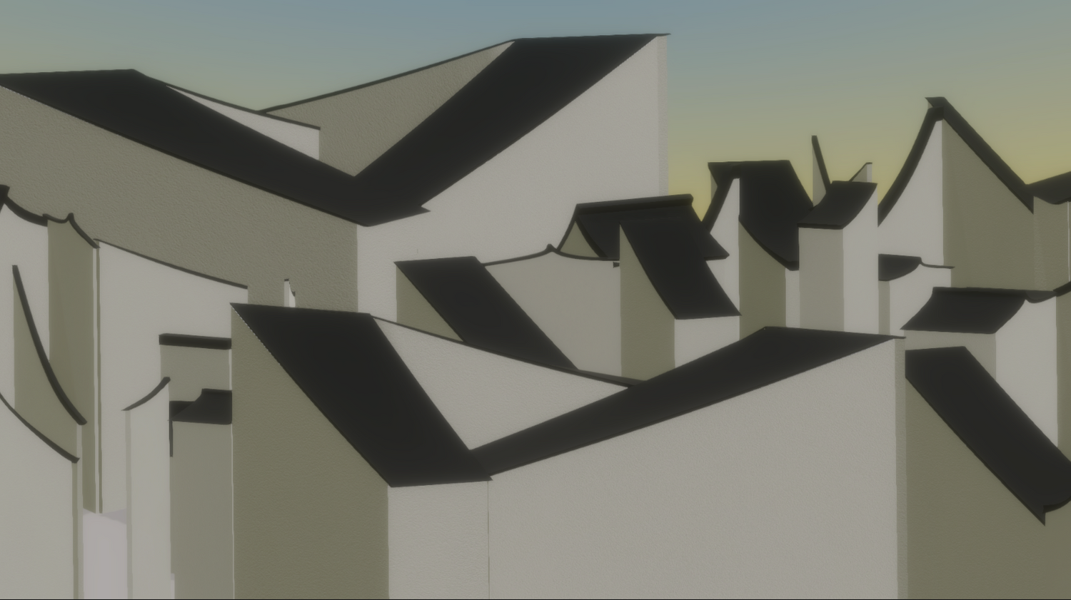 angular shapes until it transformed into a series of flying eaves.